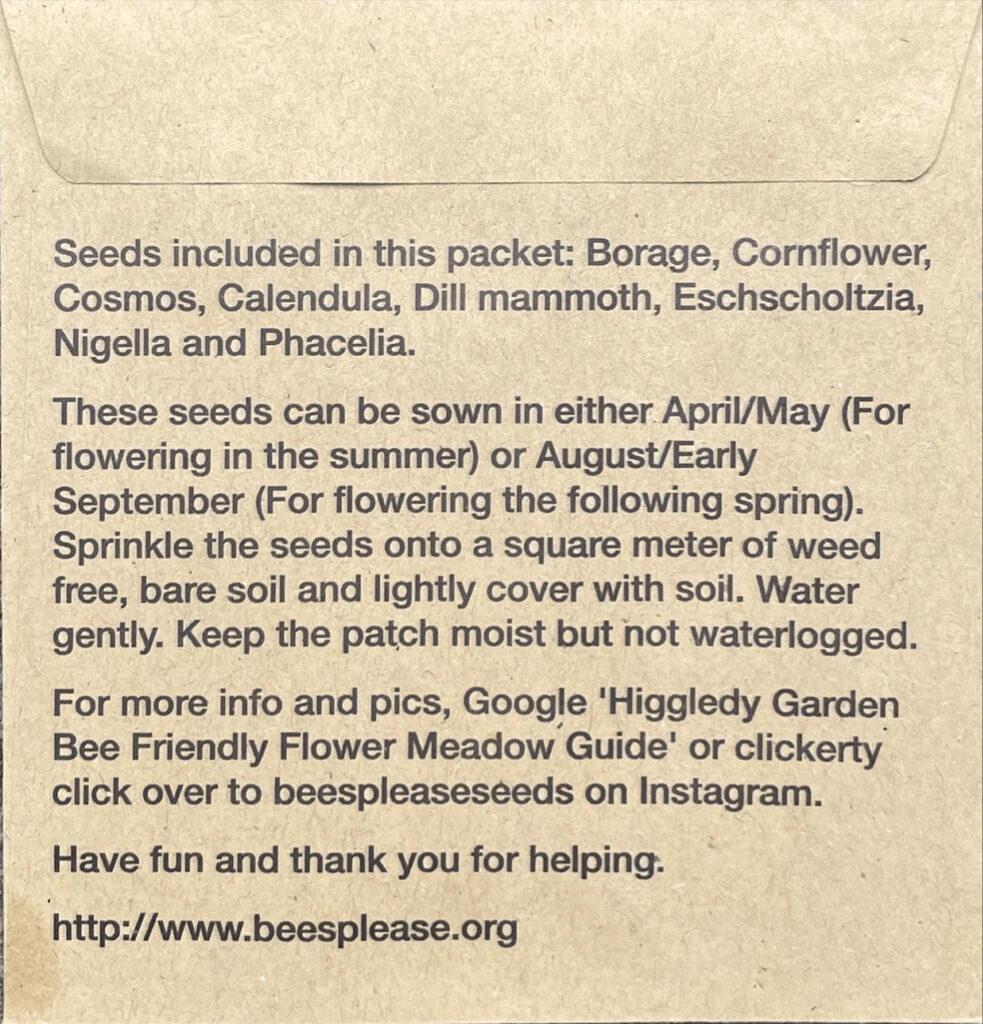 Bees Please is a Cornwall-based sister company of Higgledy Garden, offering bee friendly flower seed packets for retail, fundraising, charity or promotion purposes. Our seed packets can be printed to your own design or with our BeesPlease branding.